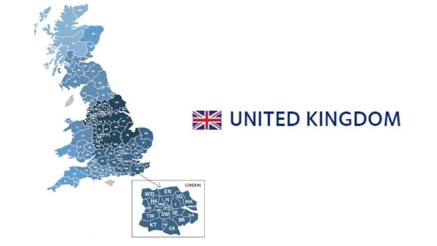 Scarica la nostra mappa dei codici postali del Regno Unito in PDFSCARICA LA MAPPA -